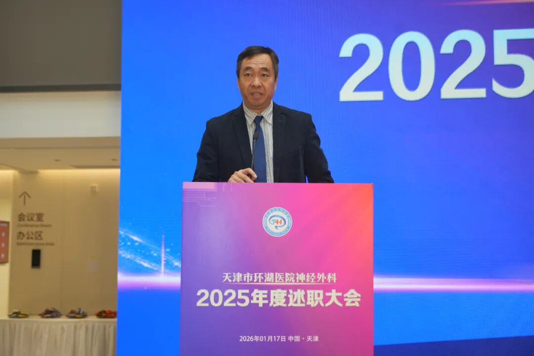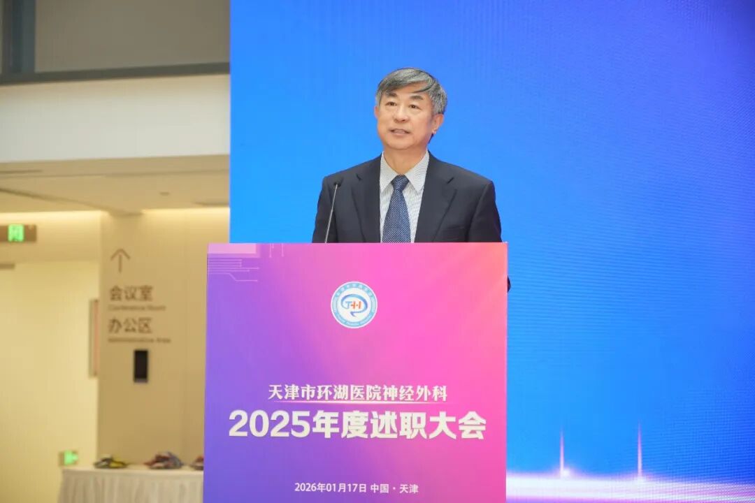 岁聿云暮,序启新华。2026年1月17日,天津市落下了新年的第一场雪。雪花翩跹之中,天津市环湖医院神经外科2025年度述职大会在天塔院区隆重召开。本次大会汇聚国内神经外科领域顶尖专家与医联体同仁,共叙过往、共策未来,开启了一场融合学术高度与实践温度的思维盛宴。