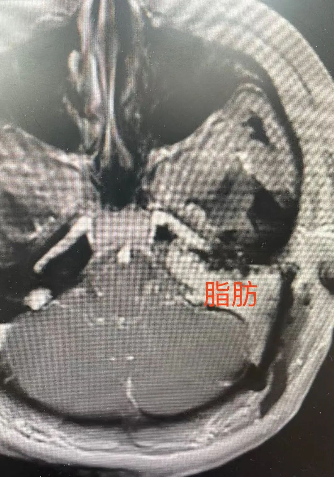 肿瘤位于桥小脑角,突入内听道,进入岩骨