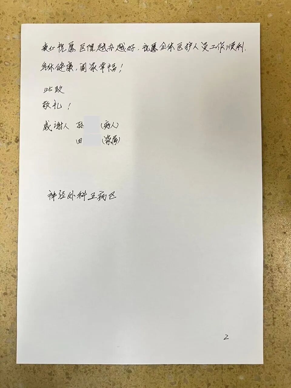 顺利出院后,这份跨越病痛的医患情谊始终温暖着患者全家。他们特地发来感谢信,字里行间满是对王虎主任团队精湛医术的敬佩,以及对神经外科五病区全体医护人员无微不至照料的感激。正是医护人员的责任与担当、专业与坚守,为患者驱散了病痛的阴霾,重启了美好的生活篇章。