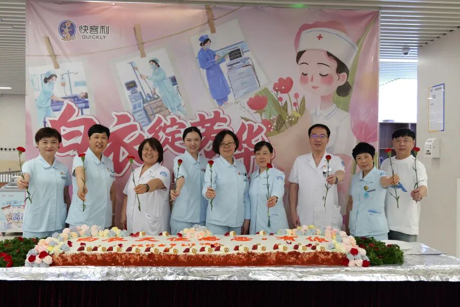 医院食堂为大家准备了精美的蛋糕和可口的饭菜,为全院护士送上真挚的节日问候。